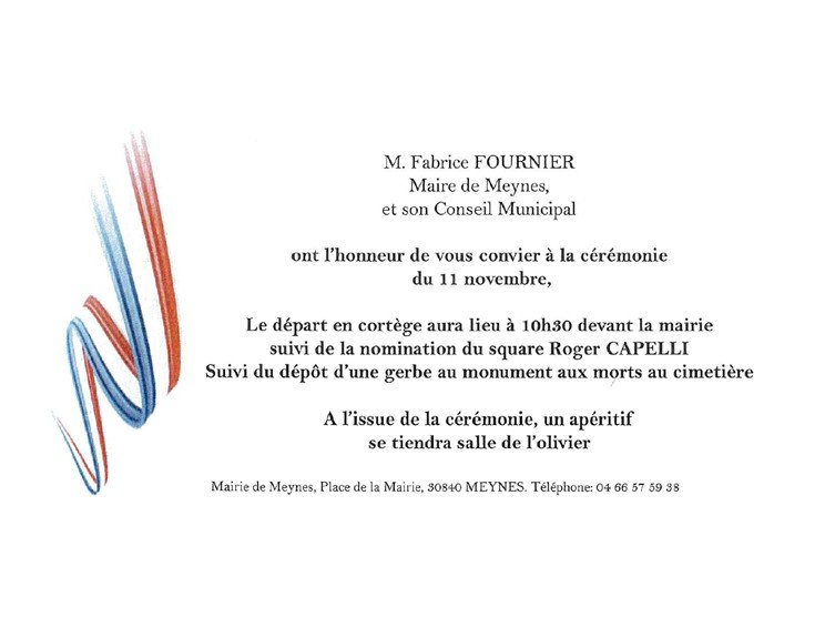 À l'issue de la cérémonie, un apéritif se tiendra à la salle des fêtes.