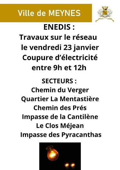 ENEDIS : TRAVAUX SUR LE RÉSEAU LE 23/01 MATIN